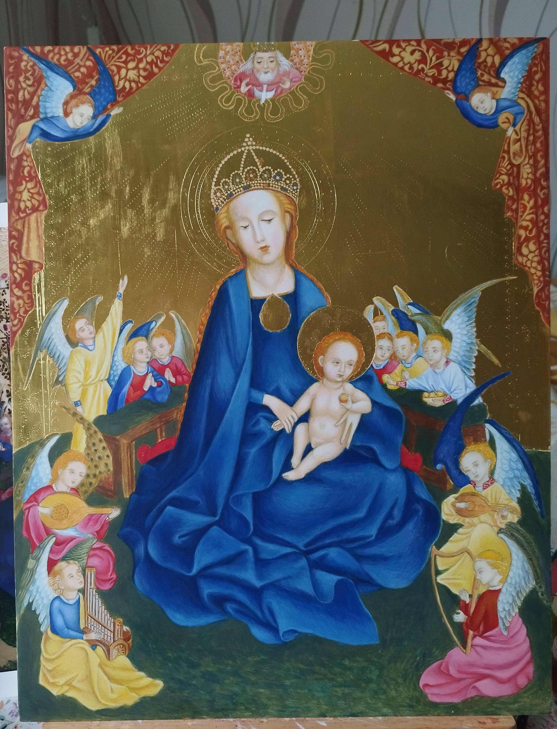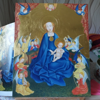 Zapytanie o ikone: Madonna w ogrodzie różanym wg Stefana Lochnera